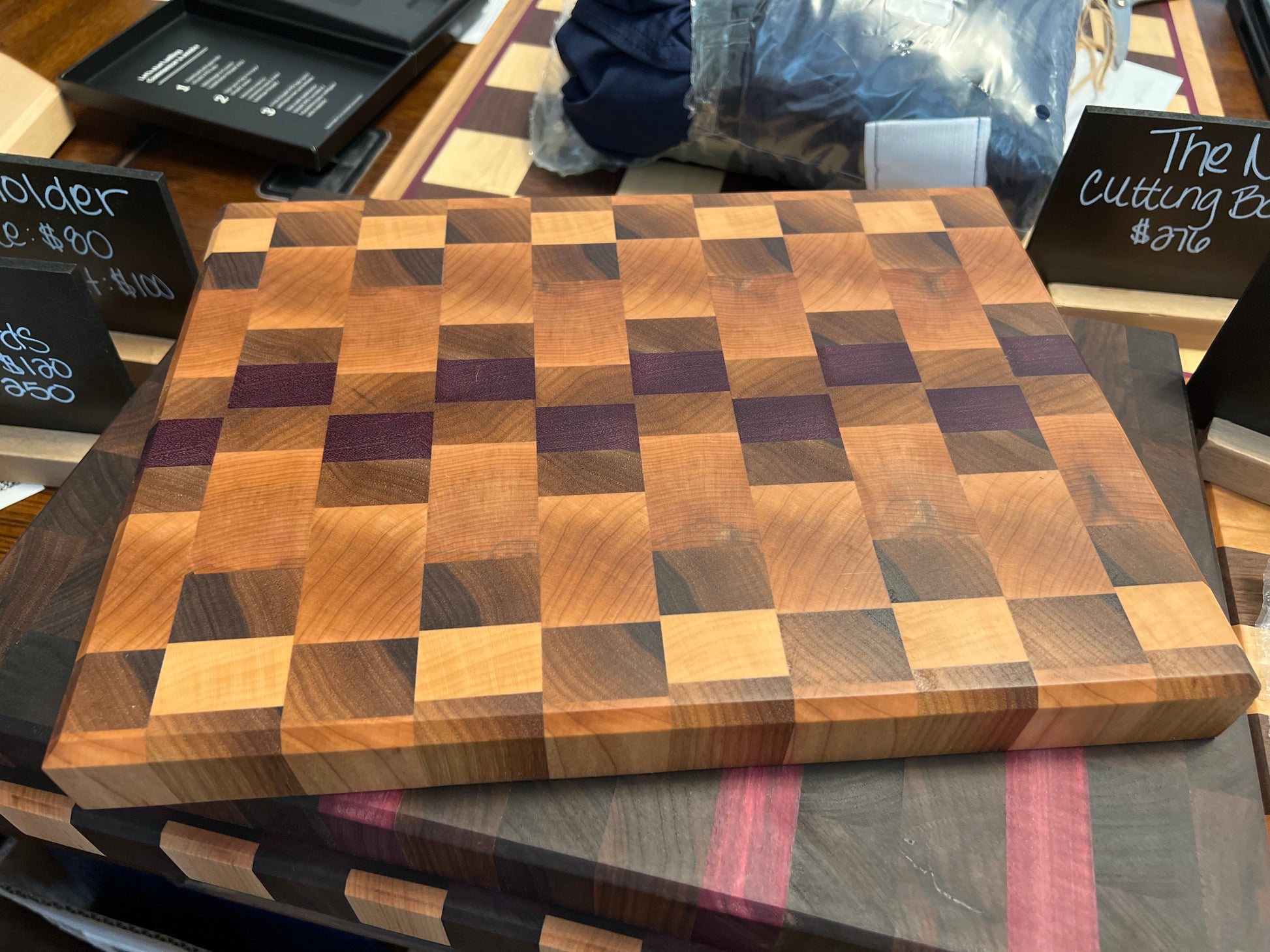 Maple, Cherry, Black Walnut, and Purple Heart end grain cutting board.